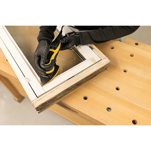 Med en höjd på endast 10 cm ger verktygets kompakta och mycket låga profil en hög manövrerbarhet och hjälper till att leverera en exakt och effektiv slipprestanda. Den ergonomiska designen, låga vibrationer och låg ljudnivå säkerställer att slipmaskinen kan användas bekvämt under långa perioder utan trötthet.