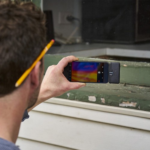 FLIR ONE PRO förvandlar din smartphone eller surfplatta till en kraftfull värmekamera. Vattenläckor, elfel eller värmeläckage upptäcks direkt med mobilen. Den innovativa VividIR-tekniken gör att man får bilder med tydliga detaljer. Kameran ansluts i USB-C uttaget. Den kostnadsfria FLIR ONE-appen gör det enkelt att samla in och dela värmebilder. FLIR ONE PRO är utrustad med MSX funktionen (Multi Spectral Dynamic Imaging) som skapar tydligare värmebild genom att kombinera den infraröda bilden med en visuell kamerabild. På skärmen visas så små temperaturvariationer som ned till 0,1°C. Appen har funktioner för videoinspelning (MOV), panorama, timelapse, närbild och skiss. Den kan ladda över tagna bilder direkt till bildarkivet och gör det enkelt att dela bilder via e-post, SMS och sociala medier. Appen visar även batteristatus. Tack vare ett eget inbyggt batteri belastar inte kameran mobilens batteritid. Vissa mobilskal kan försvåra kontakten med FLIR ONE.