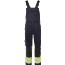 Flamskyddad, multinorm hängselbyxa med inherent flamskydd. Tillverkad i ett lätt stretchmaterial med bra slitstyrka. Smuts-, olje- och vattenavvisande. Metallfri. Bröstficka med lock och dolda tryckknappar. Stor innerficka med dragkedja. 2 framfickor. 2 förstärkta bakfickor med lock och dolda tryckknappar. Förstärkt ficka för tumstock och verktyg med lock och dolda tryckknappar, pennhållare samt knapp och hälla för kniv. Benficka med lock och dolda tryckknappar, telefonficka och hälla för id-kortshållare. Reglerbara elastiska hängslen. Reglerbar midja med knappar. Gylf med dragkedja. Dubbel förstärkt grensöm. Förstärkta knäfickor med öppning inifrån. Knäskydden i knäfickorna kan höjdjusteras. Extra benupplägg, kan förlängas 5 cm. Tvätt 60°C.
