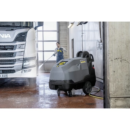 Kraftfull och användarvänlig hetvattentvätt för effektiv rengöring. Lågvarvig, 4-polig och vattenkyld 3-fas motor, robust 3-kolvs axialpump med keramisk kolvpump och ekonomiskt eco!efficiency-läget säkerställer maximal prestanda och pålitlig, ekonomisk drift. Hög effektivitet, i eco!efficiency-läget anpassas maskinen till den mest kostnadseffektiva temperaturen (60°C) med fullt vattenflöde. Brännaren är optimerad för att minska bränsleförbrukningen med 20% jämfört med max kapacitet. Max arbetstryck på upp till 180 bar. Max temperatur på varmvatten 98°C och max temperatur vid ångdrift 155°C. Dubbla rengöringsmedelstankar, enkelt att växla mellan tank 1 och 2. Exakt dosering av rengöringsmedel med sköljfunktion. Rengöringsmedelstankar och bränsletank kan fyllas på från utsidan. Hög driftsäkerhet, lätttillgängligt vattenfilter skyddar pumpen mot smutspartiklar i vattnet. Säkerhetsventiler samt skydd för vatten eller bränslebrist säkerställer driftssäkerhet på maskinen. SDS-systemet kompenserar för vibrationer och tryckstötar i högtryckssystemet. Användarvänliga reglage, ett vrede för alla funktioner. Kontrollpanel med indikationslampor. Bekvämt och egonomiskt spolhandtag EASY!Force Advanced. Tryck och flöde på vattnet kan justeras med Servo Control-reglaget som sitter mellan lansen och pistolen. 5 m kabel med fasvändarkontakt. Inbyggda förvaringsmöjligheter. Hög mobilitet tack vare låg tyngdpunkt och stora hjul.